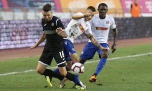 27′ Опасно положение за Хайдук – центриране към непокрития Тудор на втора греда, но той се размина с топката.