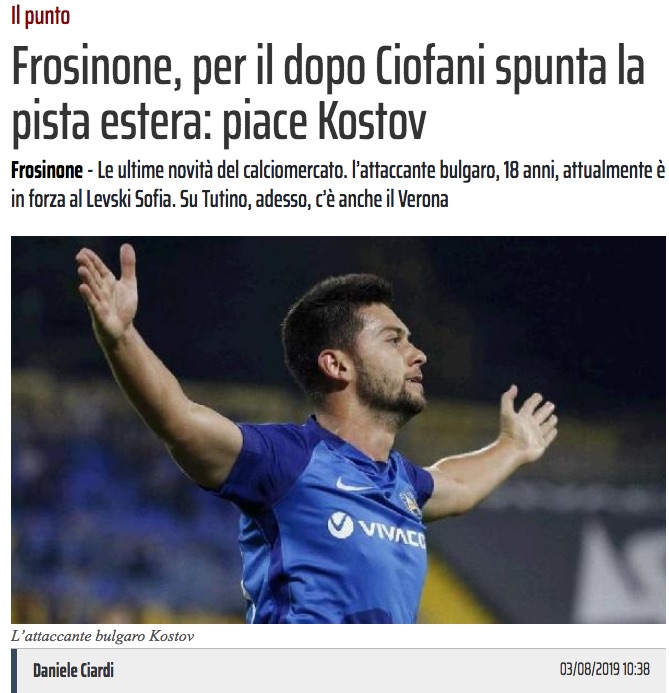 Голмайсторът на Левски Станислав Костов е трансферна цел на италианския Фрозиноне, твърди ciociariaoggi.it. “Фрозиноне е насочил специално внимание към българския нападател Станислав Костов, който е роден през 1991 година. Той пристигна в Левски през януари 2018 г. и с екипа на сините е вкарал 27 гола в 51 мача. Костов обаче не е единственото име на чуждестранен нападател, върху който Фрозиноне работи за осъществяване на трансфер”, пишат от медията.SPORTAL.BG