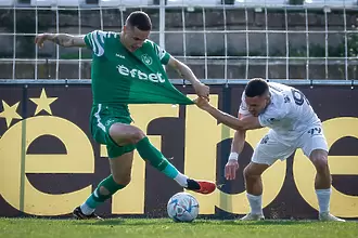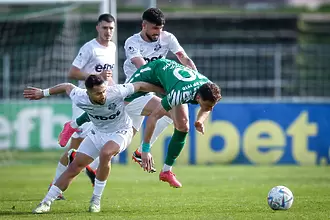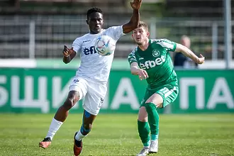 Атанас Кабов напредна през средата с топката и стреля от границата на наказателното поле в 43-ата минута, но топката прелетя над напречната греда на вратата, пазена от Анатолий Господинов.