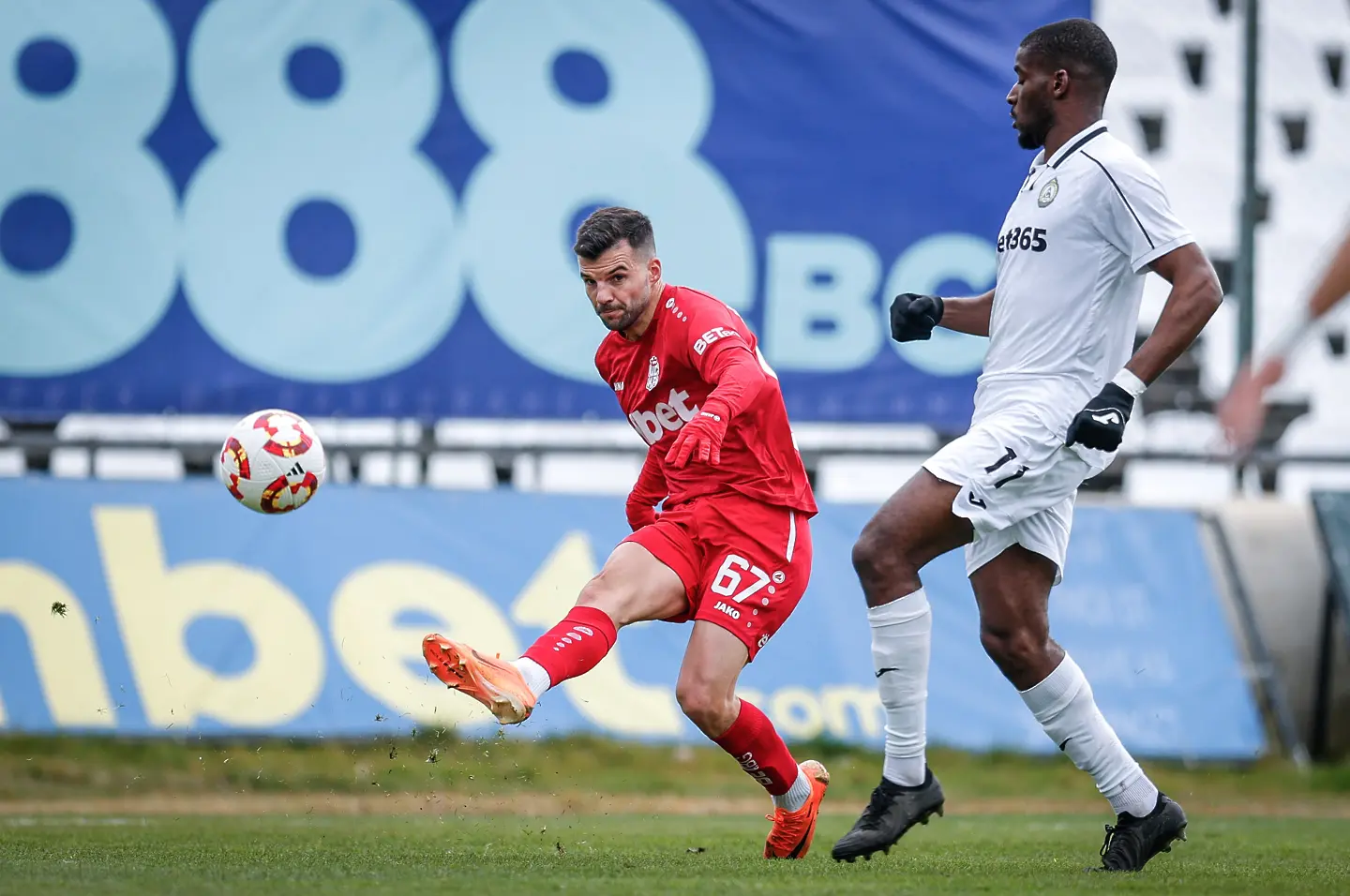 В 3-ата минута от добавеното време “червените” стигнаха до изравнителен гол. След центриране от ъглов удар Елиас Франко игра с глава, а Мамаду Диало на втора греда засече топката и я вкара в мрежата на Славия – 2:2.