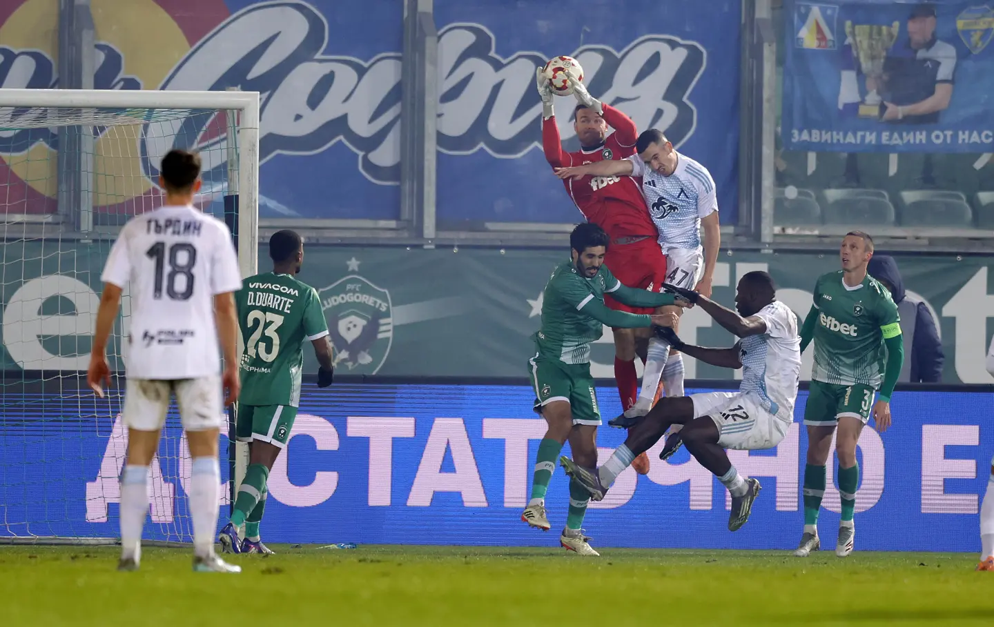 Хендрик Бонман направи впечатляващо спасяване в 64-ата минута. Евертон Бала центрира остро в наказателното поле на Лудогорец, където Мазир Сула докосна съвсем леко топката, а Бонман инстинктивно с ръка успя да избие над напречната греда в корнер.