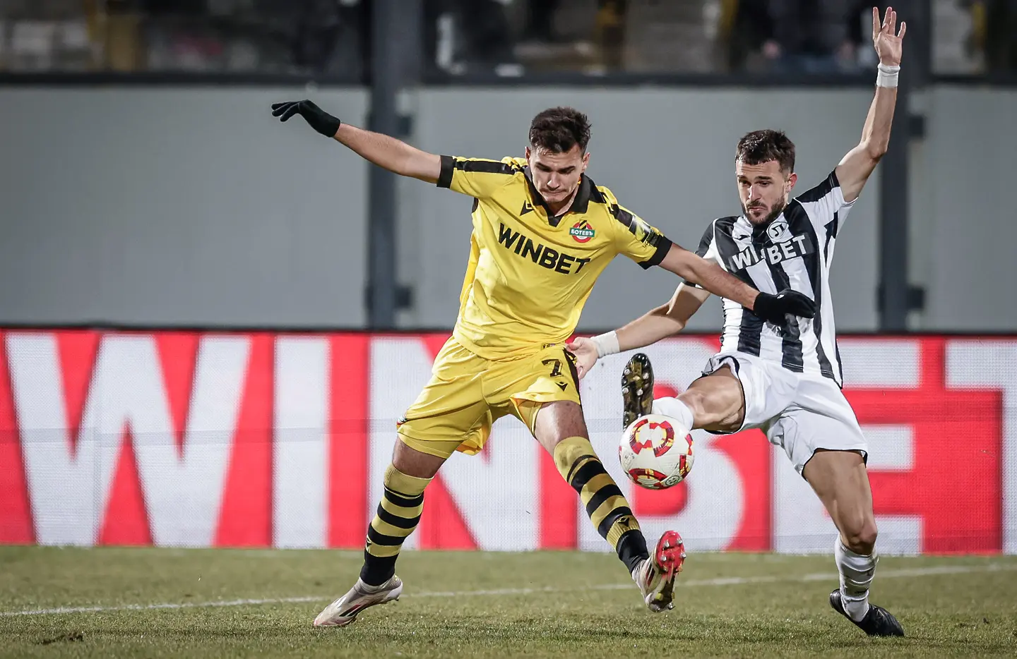 В 43-ата минута Балоянис центрира в наказателното поле, където Маскоте свали с глава топката към Тодор Неделев. Капитанът на “канарчетата” обаче шутира в левия стълб на вратата, пазена от Боян Милосавлиевич.