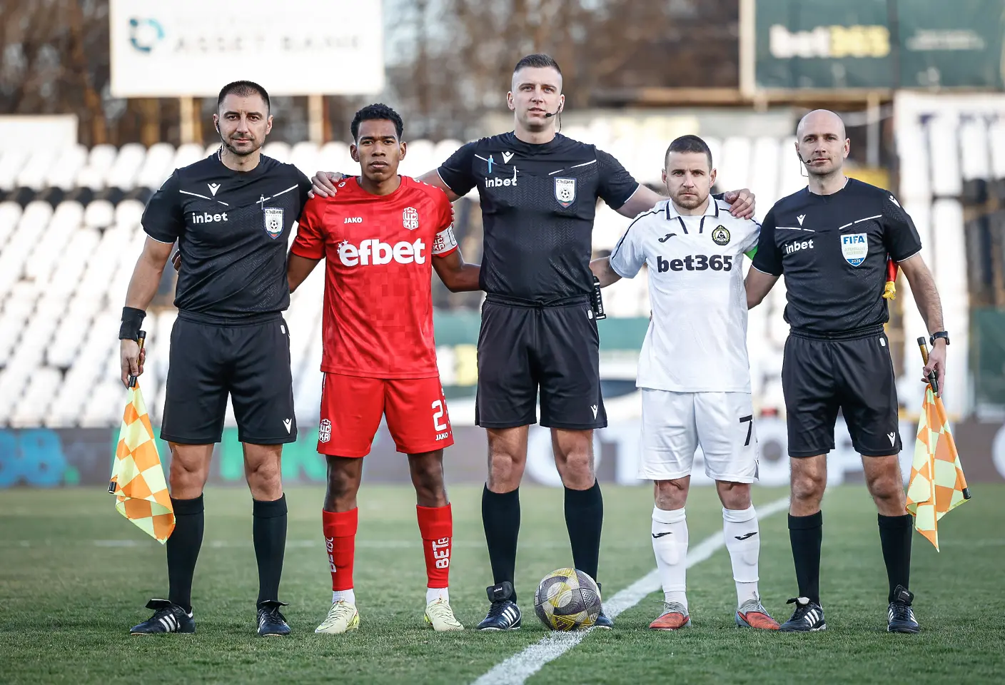 Лазар Марин получи директен червен картон в 36-ата минута, но след като ВАР съдиите привикаха главния рефер Любослав Любомиров да прегледа ситуацията лично на монитора покрай тъча, той промени решението си.