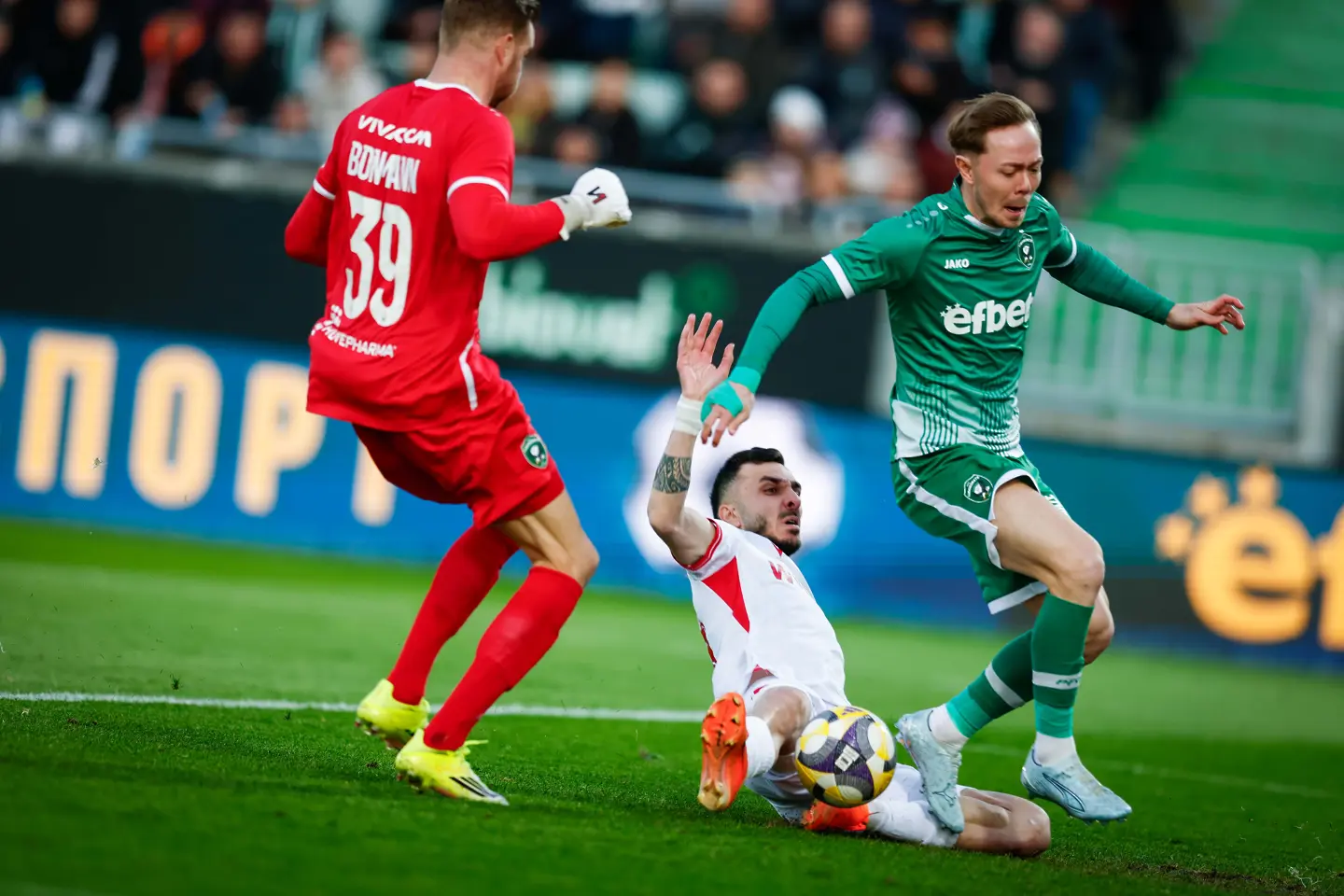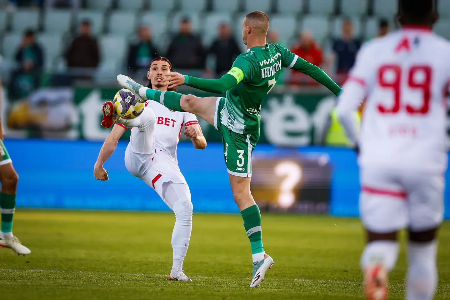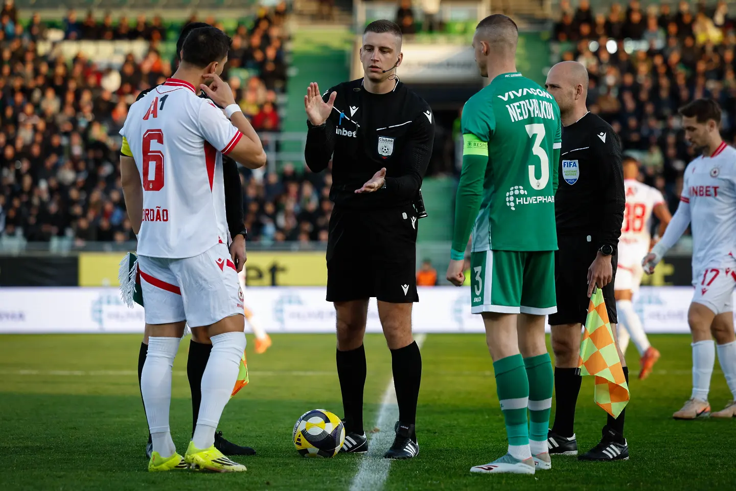 Фал на Алехандро Пиедраита срещу Ивайло Чочев, последван от остра реакция на Дерой Дуарте, доведе до истинско меле на “Хювефарма Арена”. 22-ата на терена се спречкаха сериозно около централния кръг, а главният съдия Любослав Любомиров реши ситуацията соломоновски: по един жълт картон за Дуарте и Пиедраита.