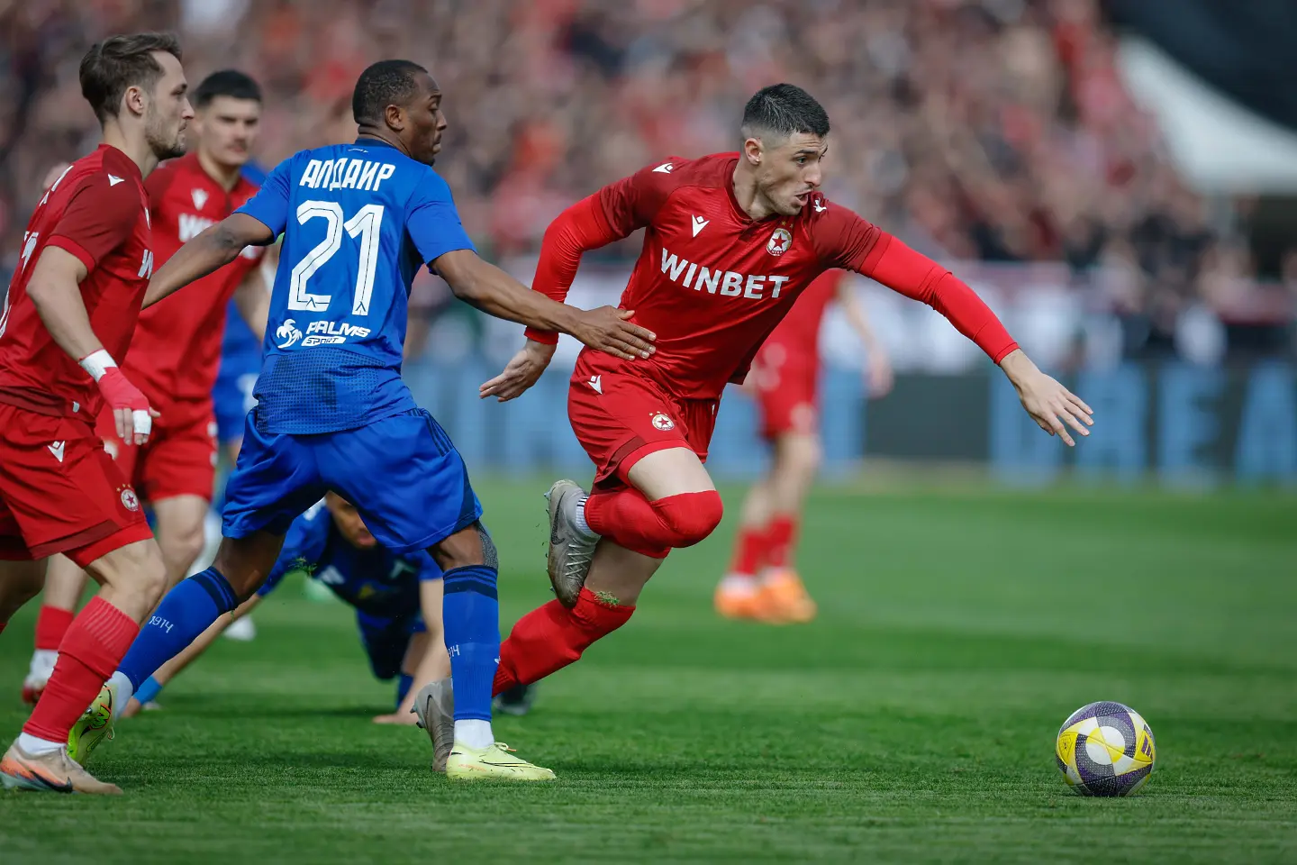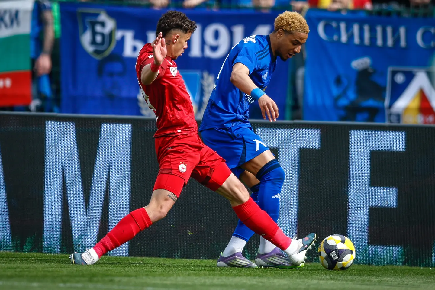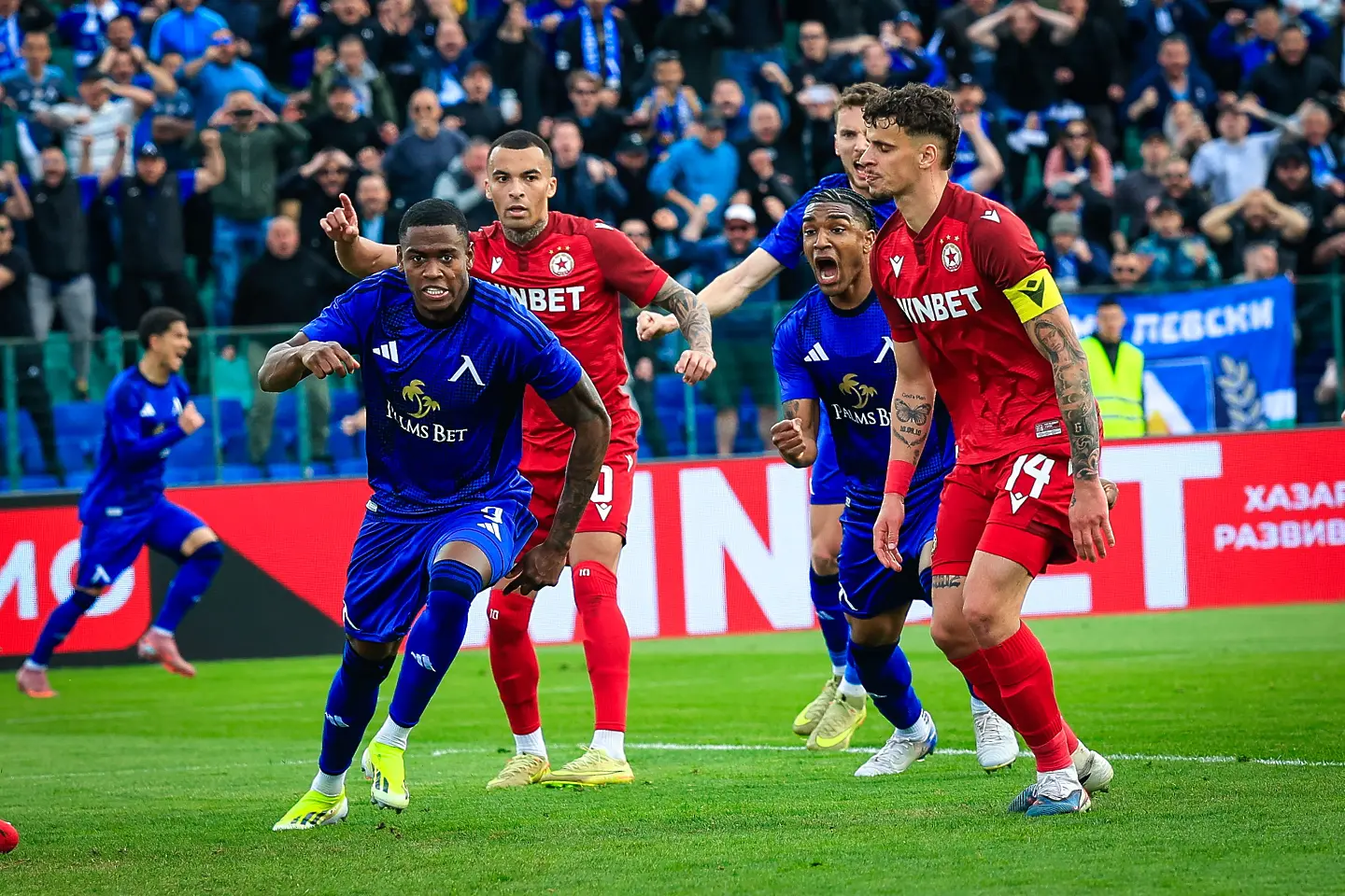 Едва в 18-ата минута напрежението леко се покачи, като на Фьодор Лапоухов му се наложи да излиза далеч пред голлинията си, за да чисти топката в тъч пред погледа на Армстронг Око-Флекс. “Червените” отговориха с комбинация по левия фланг между Анхело Мартино и Алехандро Пиедраита. Колумбиецът потърси пас около дузпата, където Петко Панайотов бе блокиран в сетния миг.