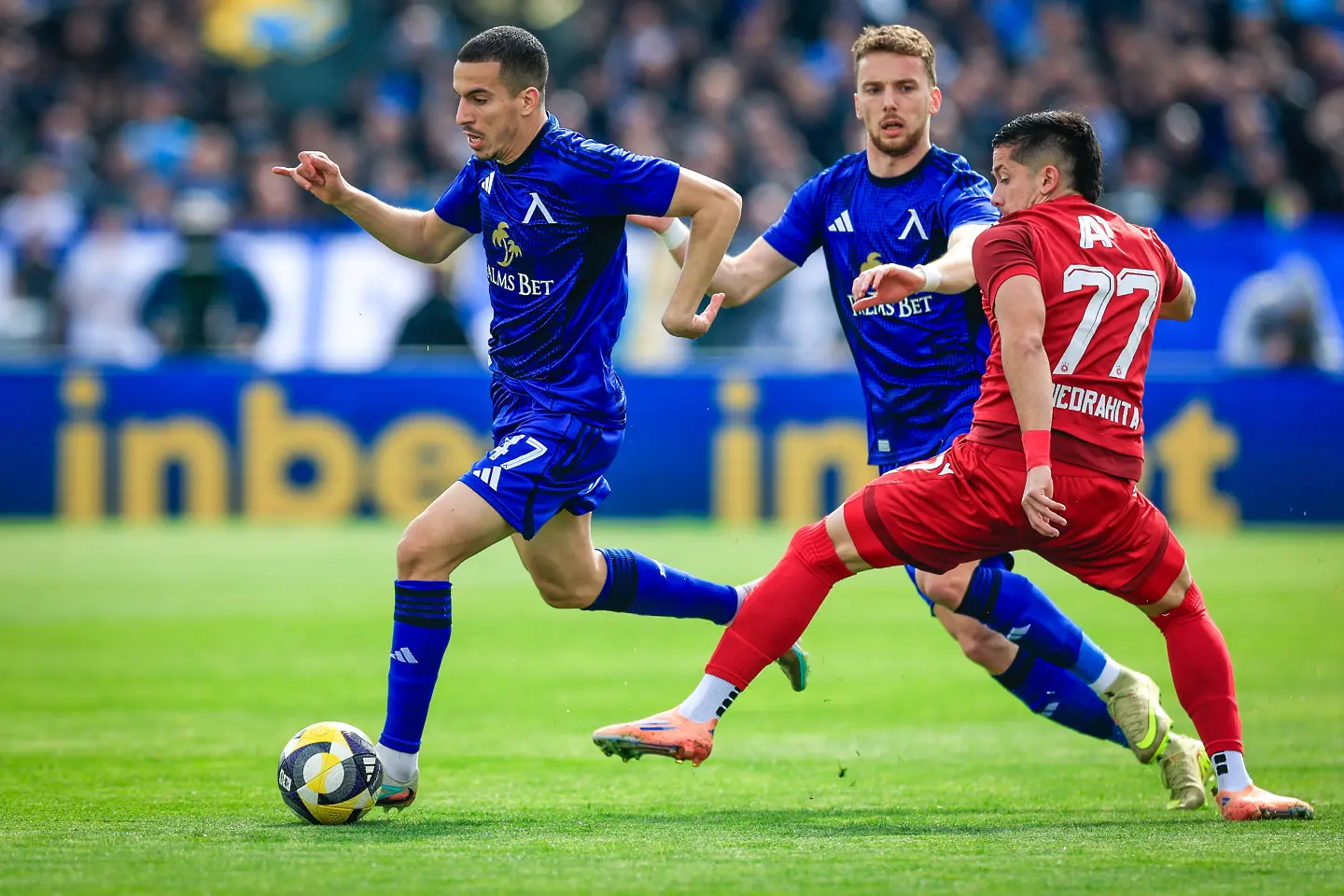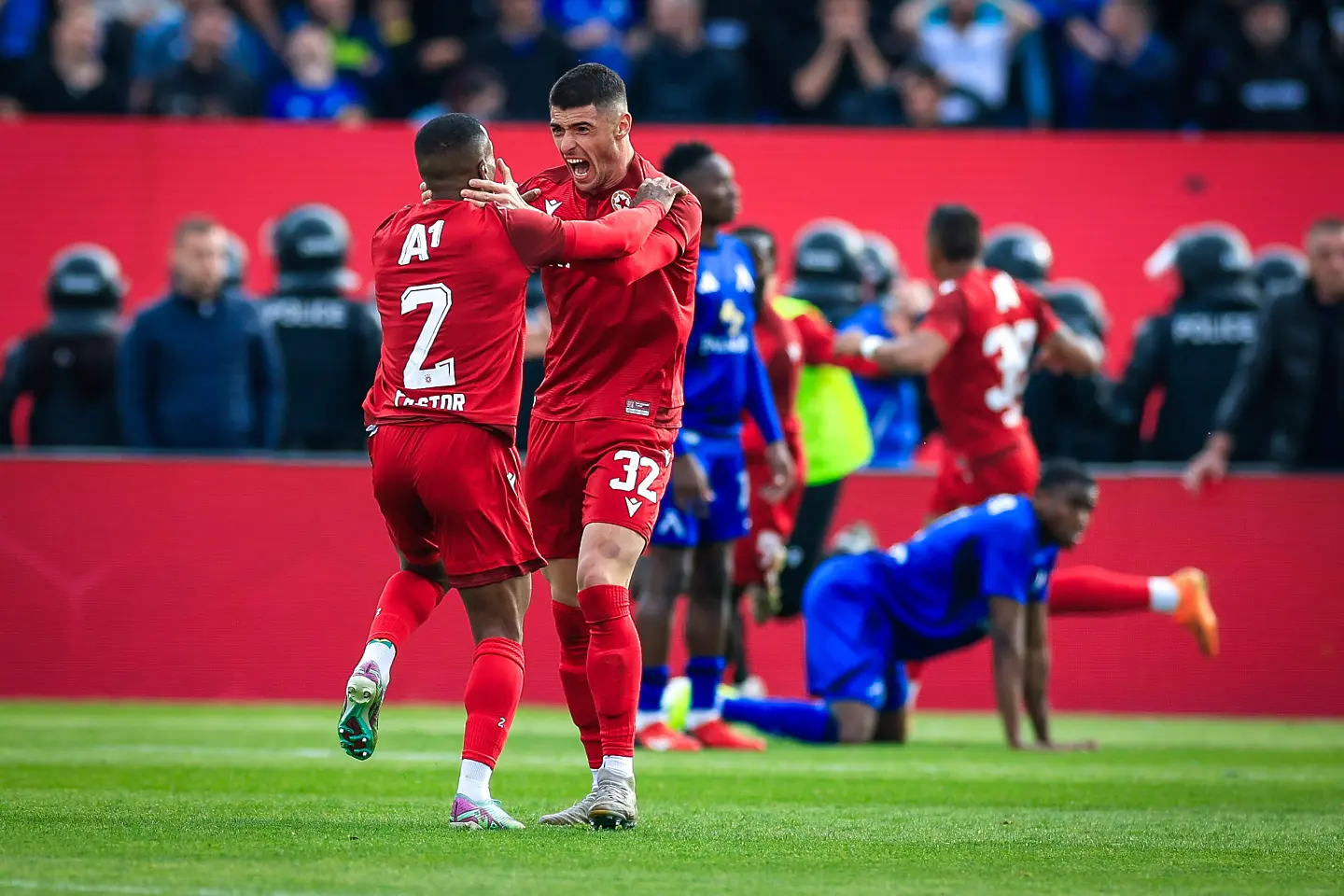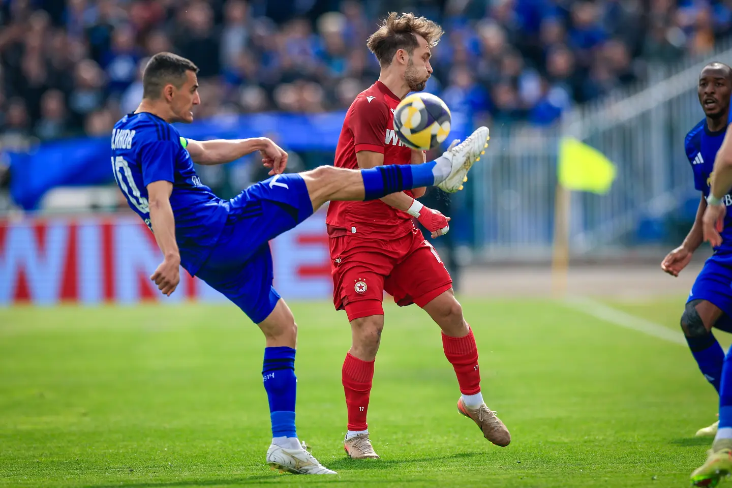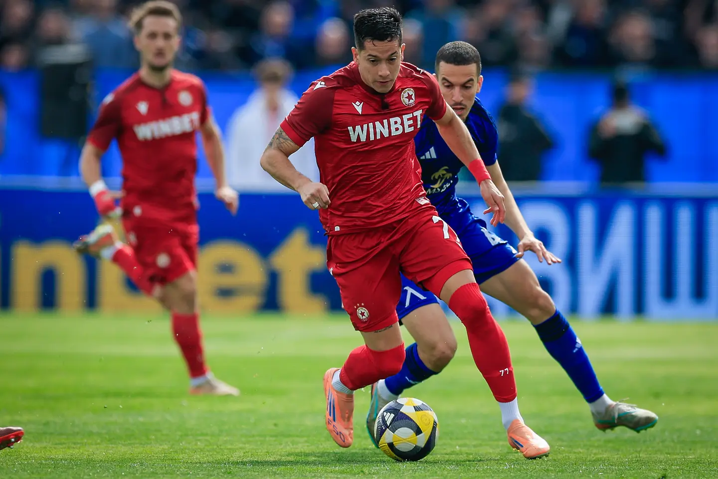 Едва в 18-ата минута напрежението леко се покачи, като на Фьодор Лапоухов му се наложи да излиза далеч пред голлинията си, за да чисти топката в тъч пред погледа на Армстронг Око-Флекс. “Червените” отговориха с комбинация по левия фланг между Анхело Мартино и Алехандро Пиедраита. Колумбиецът потърси пас около дузпата, където Петко Панайотов бе блокиран в сетния миг.