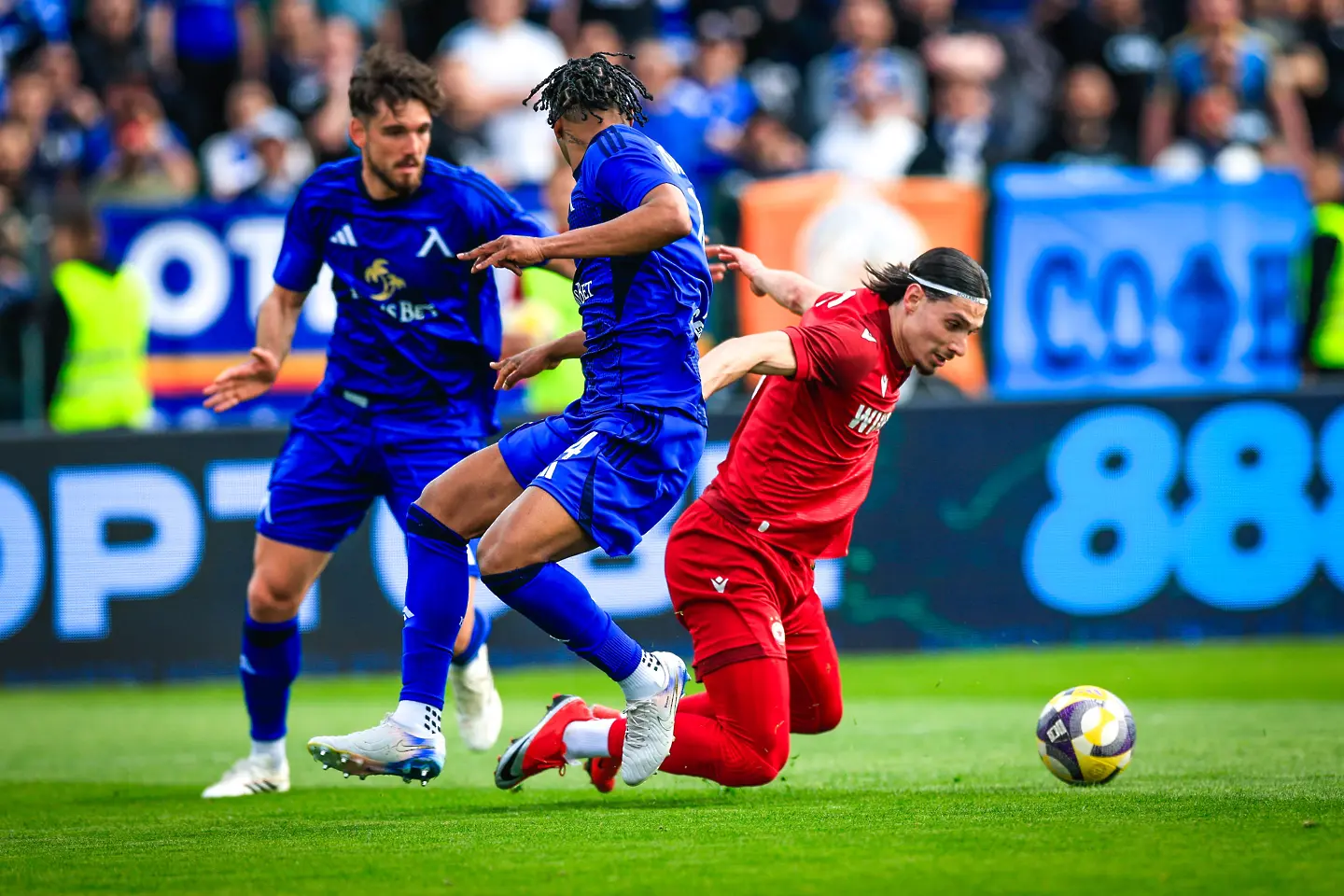 Второто полувреме стартира вихрено. Кристиан Макун изпълни дълго тъч, а Факундо Родригес изби в краката на съперник. Армстронг Око-Флекс стреля, а Анхело Мартино блокира почти сигурен гол. Секунди по-късно “червените” сътвориха изключително опасна контраатака, която като по чудо не завърши с точен изстрел и от Джеймс Ето’о, и от Йоанис Питас. Няколко минути по-късно Георги Костадинов зачесе центриране на Евертон Бала от корнер с глава, но в аут.